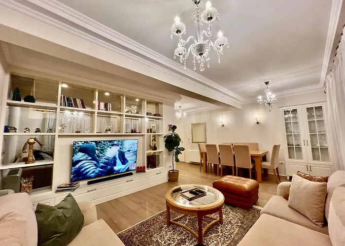 I den 130 m² stora lägenheten ligger inom 30 minuters promenad från Et'Hem Bey-moskén. En 20 minuters promenad tar dig till Tiranas centrum. Den här lägenheten ligger också 2 km från Skanderbegtorget.